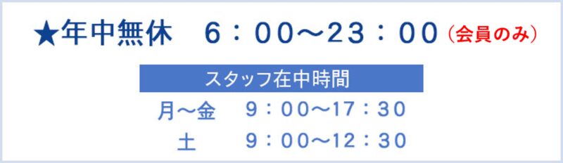 ※ 見学・体験・入会・ビジター・InBodyは スタッフ在中時間のみ とさせて頂きます。スタッフ不在の場合もございますので、電話またはLINEでの予約をお願いいたします。