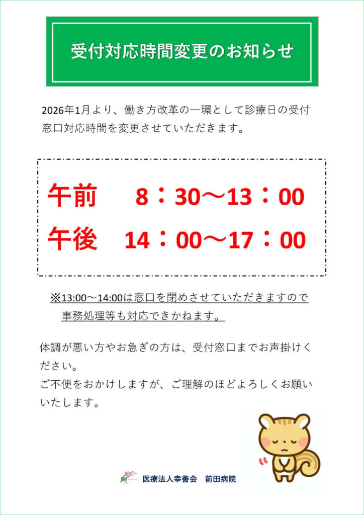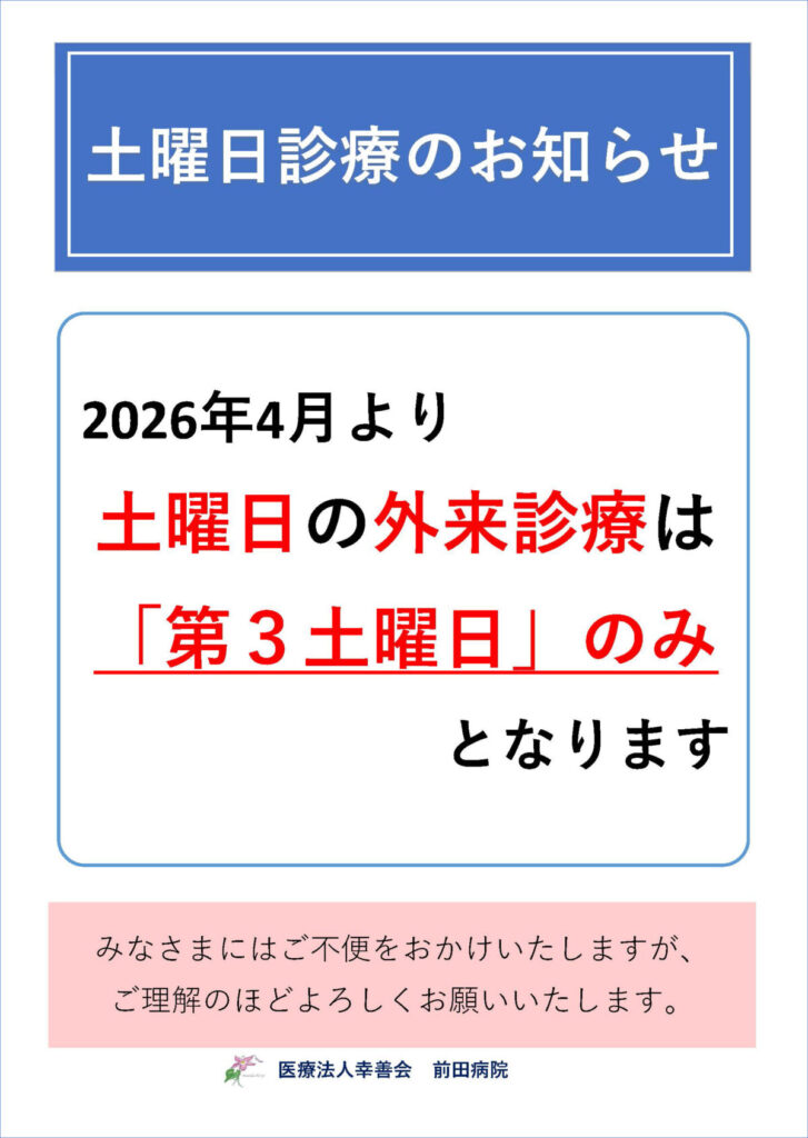 平素より前田病院をご利用いただき、誠にありがとうございます。